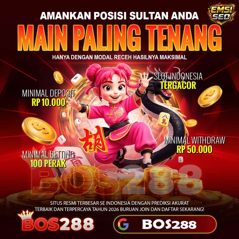 BOS288 adalah situs toto slot gacor hari ini dengan server Slot88 resmi. Platform ini menghadirkan pengalaman bermain slot gacor paling lancar dengan RTP tinggi dan peluang Maxwin yang sering cair. Proses login cepat aman dan langsung bisa hunting jackpot.